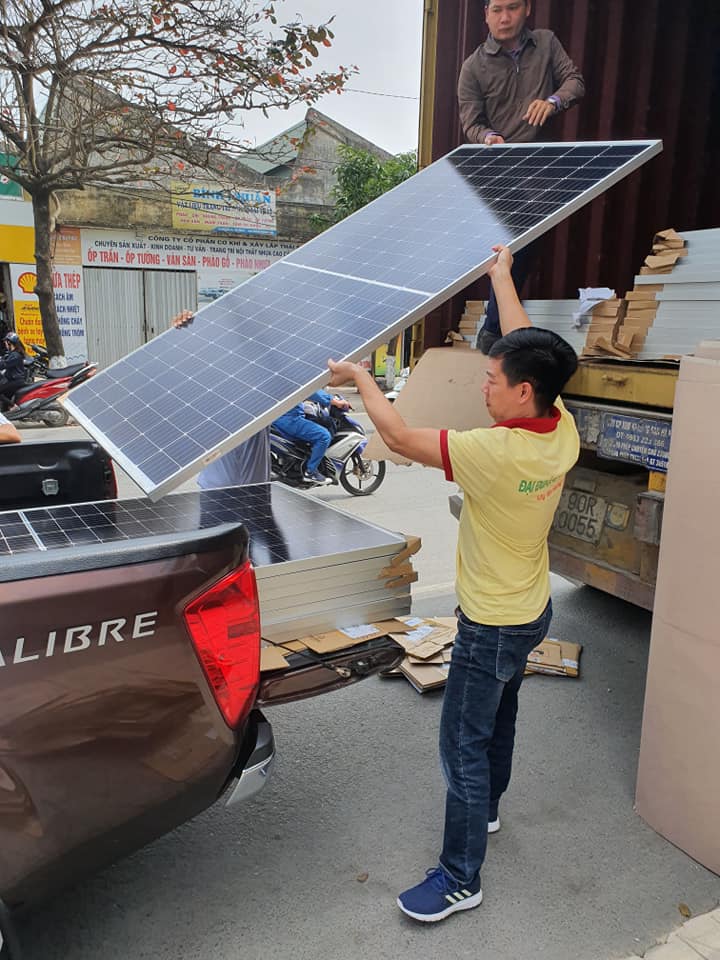 Một contairner tấm pin mặt trời đã nhập kho Đại Đoàn Gia Thái Bình! Anh em chuẩn bị hoàn thiện những công trình điện mặt trời đầu Xuân 2020